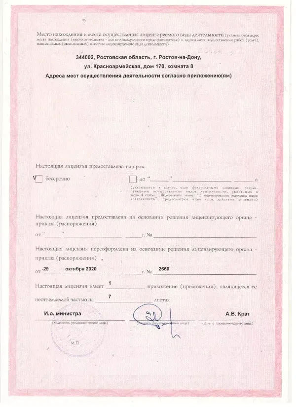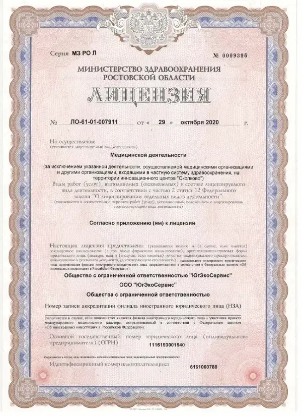 Наша работа полностью регламентируется действующими нормативно-правовыми актами Российской Федерации. Все протоколы лечения и оказания услуг строго соответствуют утверждённым стандартам и приказам Минздрава РФ