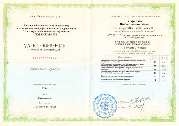 Журавлёв Виктор Анатольевич — фельдшер скорой помощи. Выезжает к пациентам на дом, ставит диагноз и определяет, требуется ли амбулаторная и стационарная помощь. Проводит необходимые терапевтические процедуры и манипуляции.